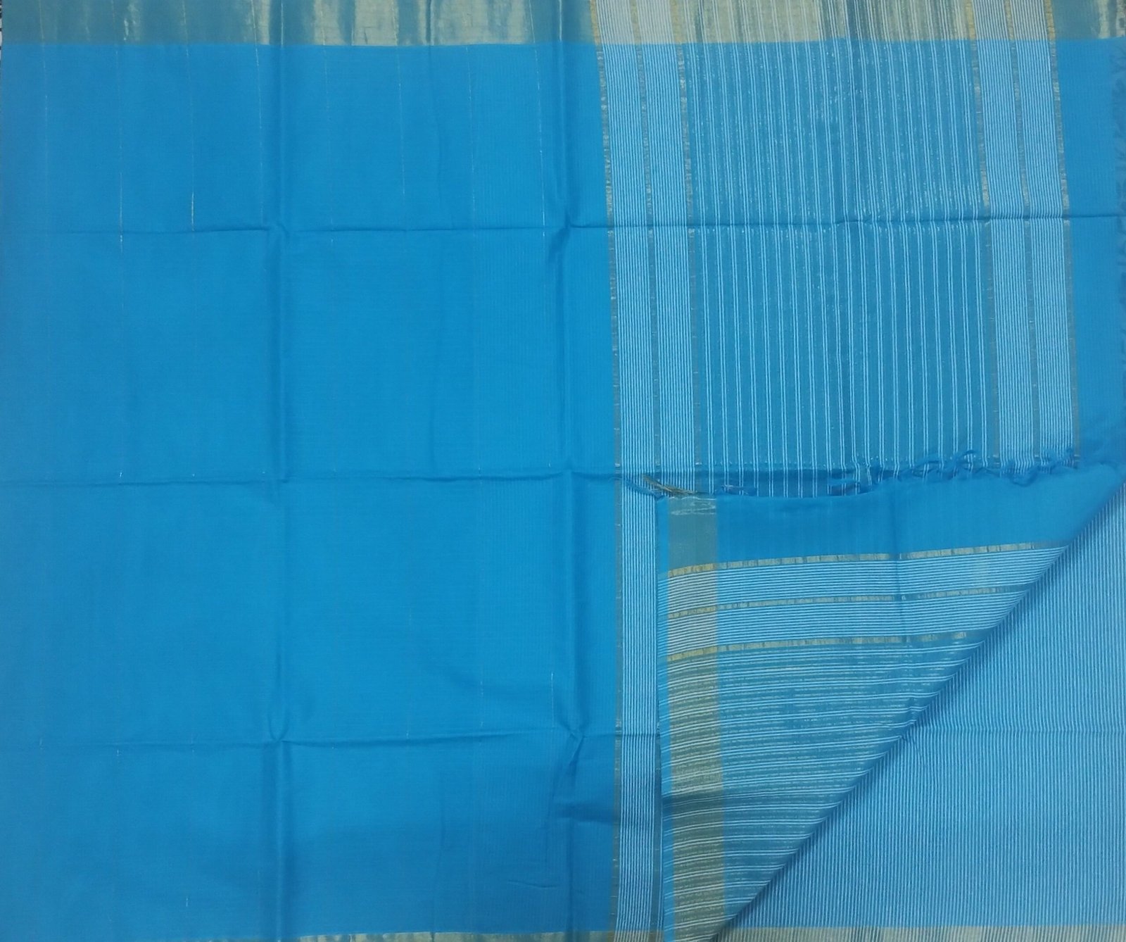 Sky Blue Pure Cotton Saree with Striped Pallu