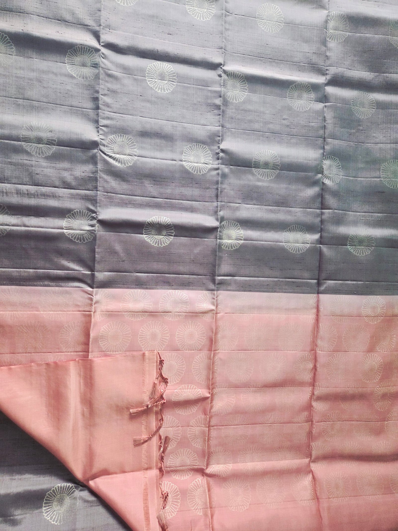 Grey and Blush Pink Sirumugai Soft Silk Saree