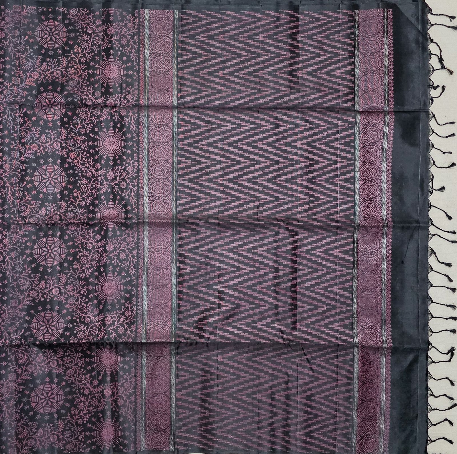 Charcoal Black and Rosewood Sirumugai Soft Silk Saree