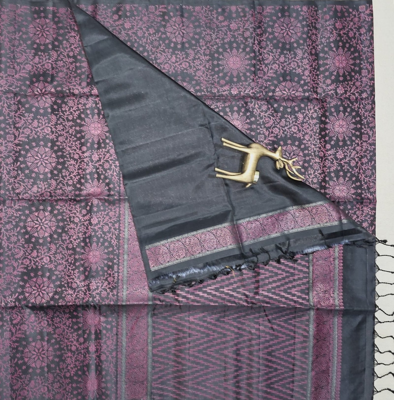Disclaimer: Product images are for representational purposes only. Actual colour and texture of the saree may vary slightly due to lighting, screen resolution, and natural variations inherent to handwoven silk.