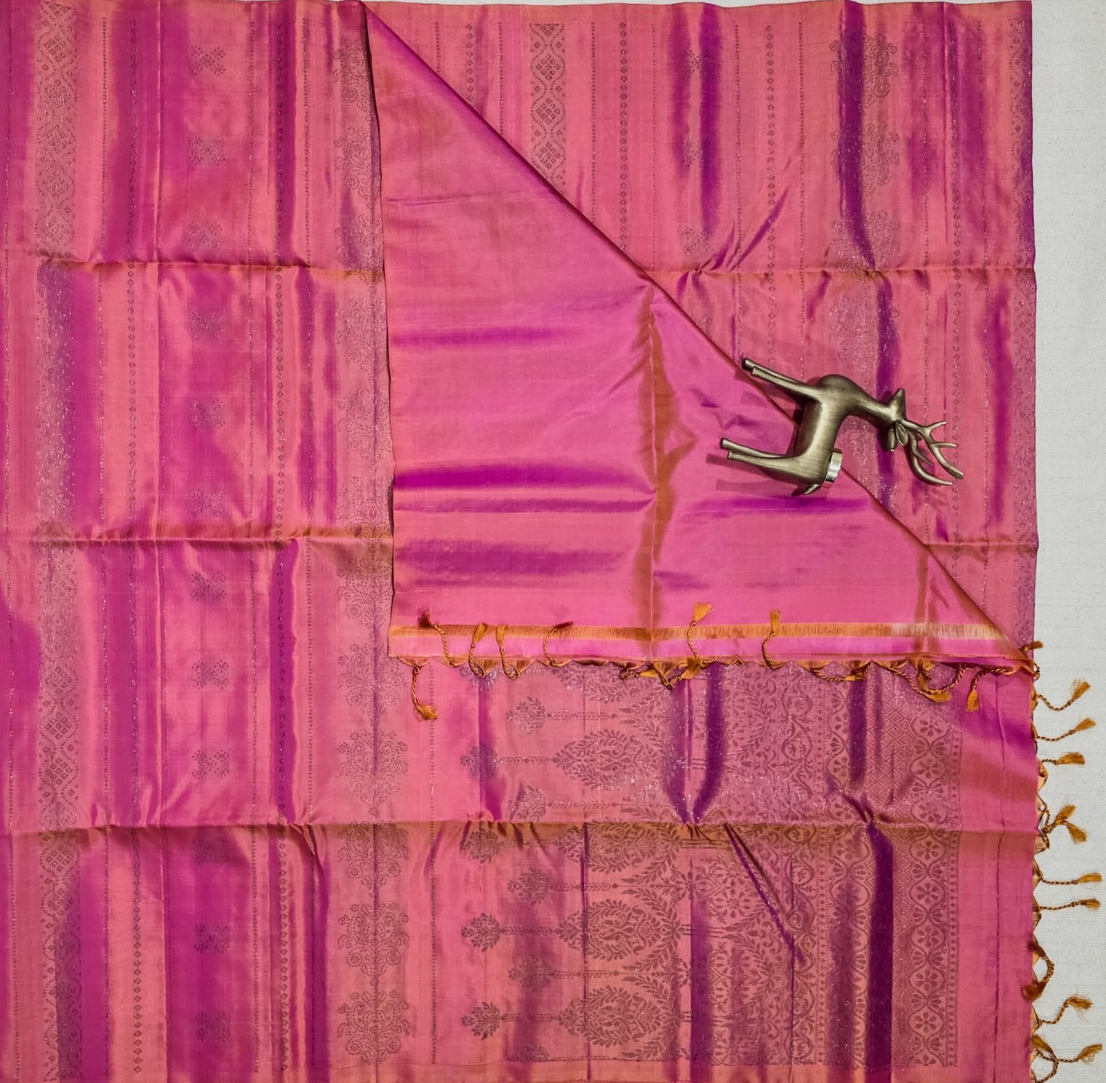 Disclaimer: Product images are for representational purposes only. Actual colour and texture of the saree may vary slightly due to lighting, screen resolution, and natural variations inherent to handwoven silk.