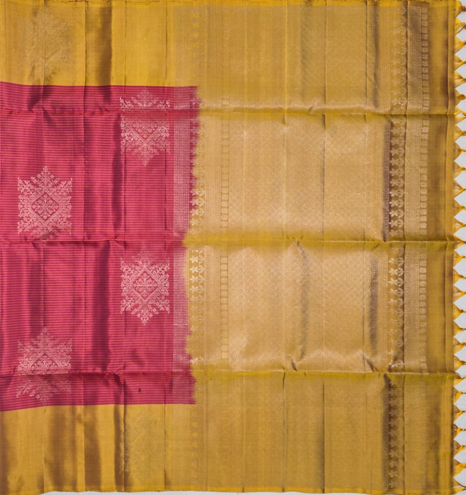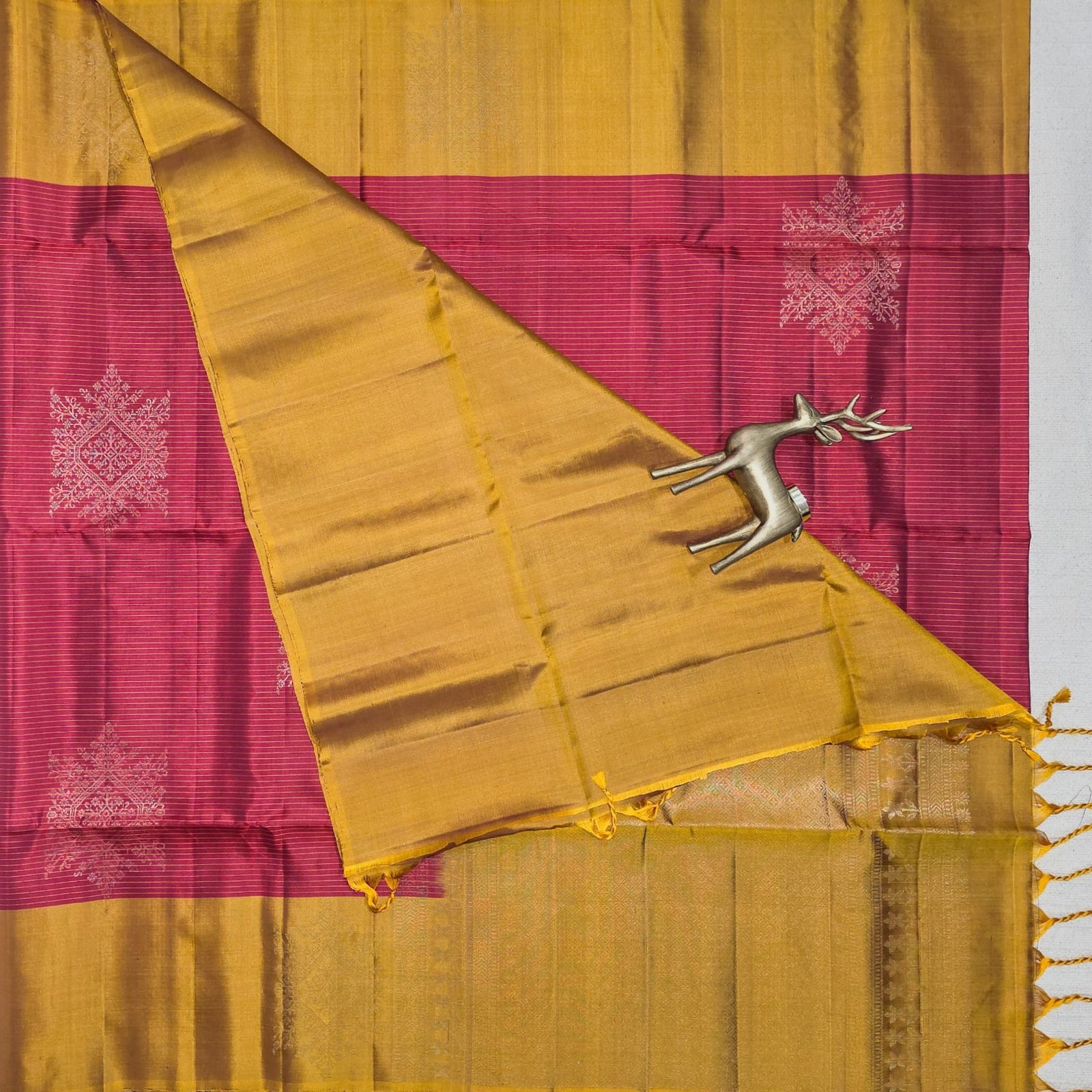 Mustard Gold & Crimson Red Sirumugai Soft Silk Saree
