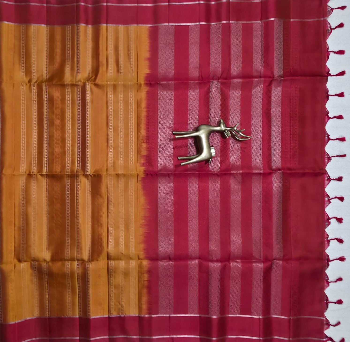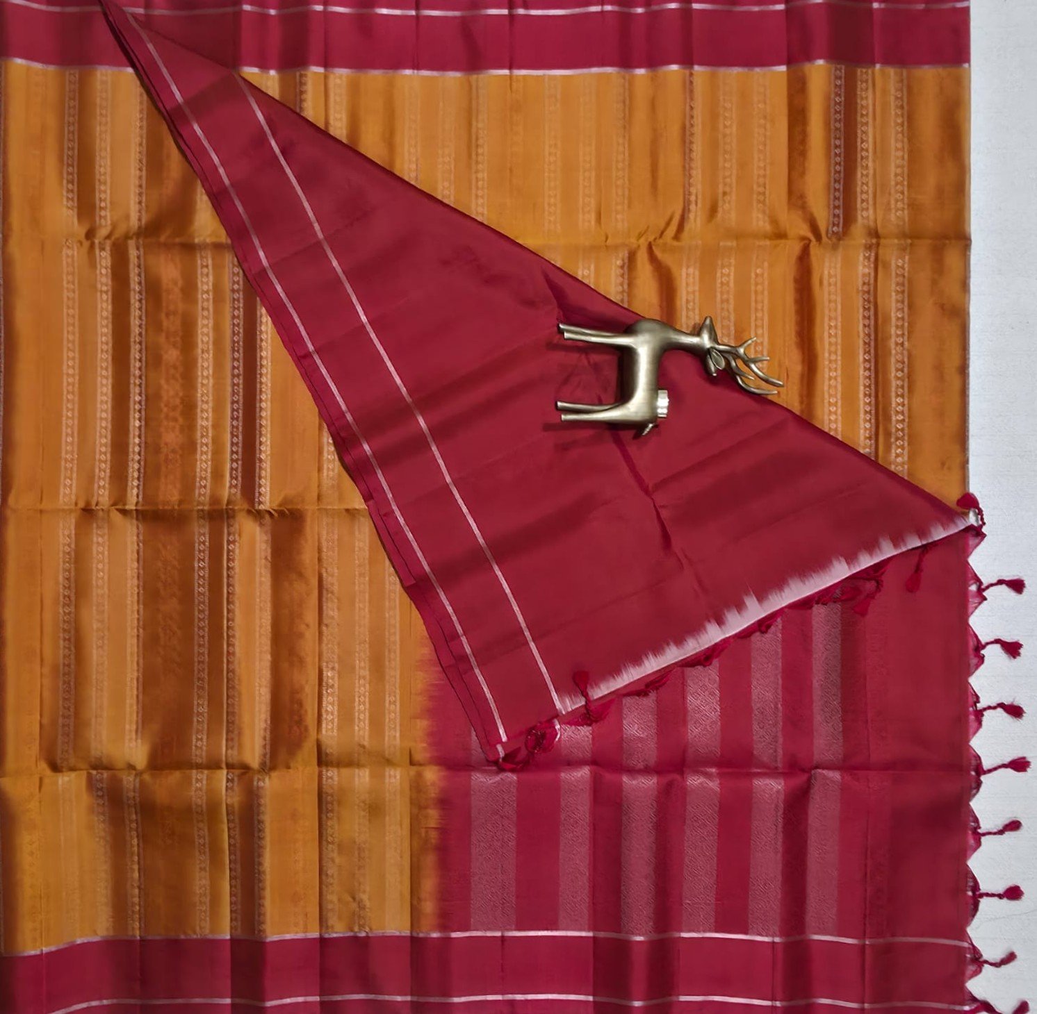 Disclaimer: Product images are for representational purposes only. Actual colour and texture of the saree may vary slightly due to lighting, screen resolution, and natural variations inherent to handwoven silk.