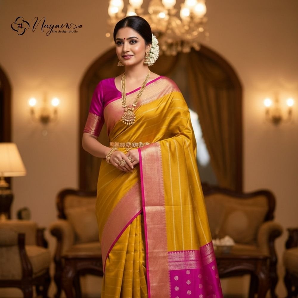 Disclaimer: Product images are for representational purposes only. Actual colour and texture of the saree may vary slightly due to lighting, screen resolution, and natural variations inherent to handwoven silk.