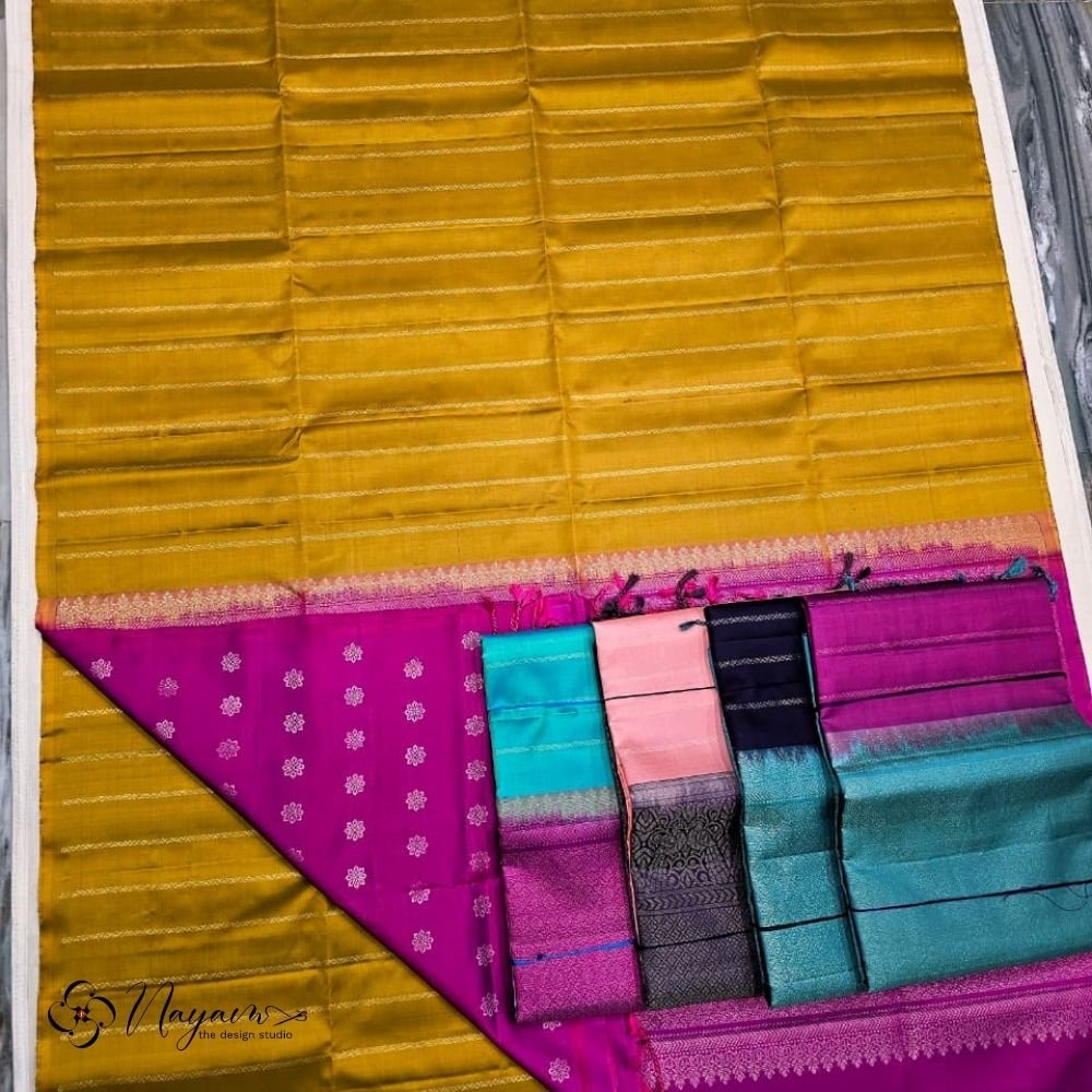 Mustard Gold and Magenta Sirumugai Soft Silk Saree