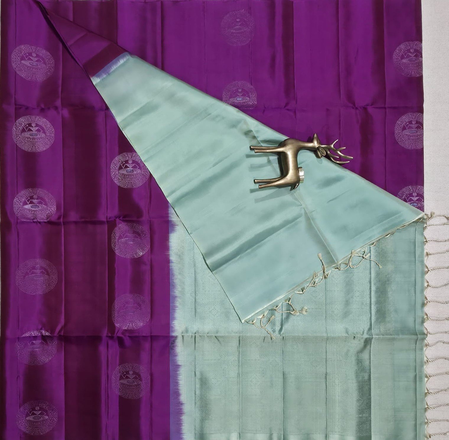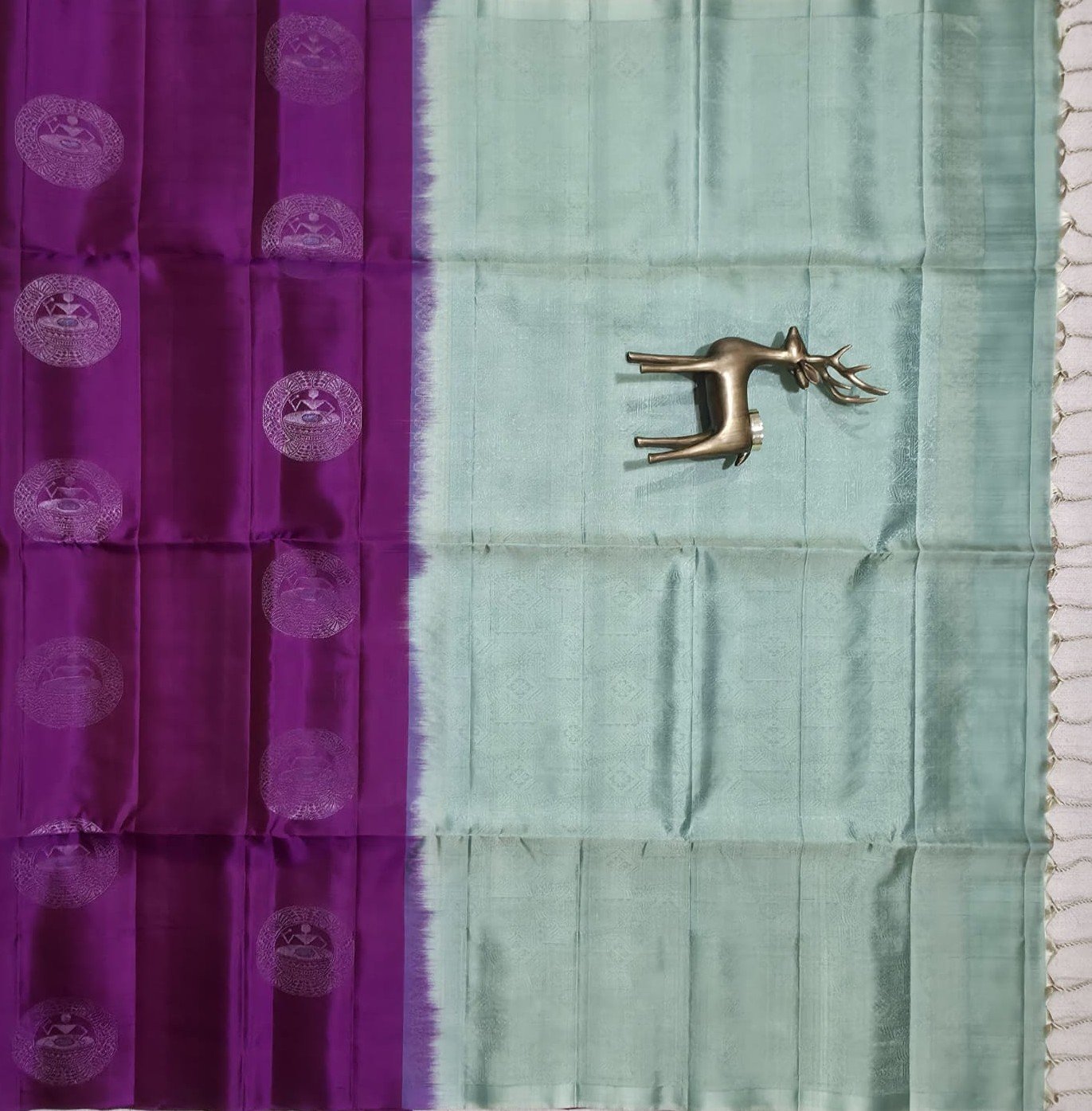 Purple and Mint Green Sirumugai Soft Silk Saree