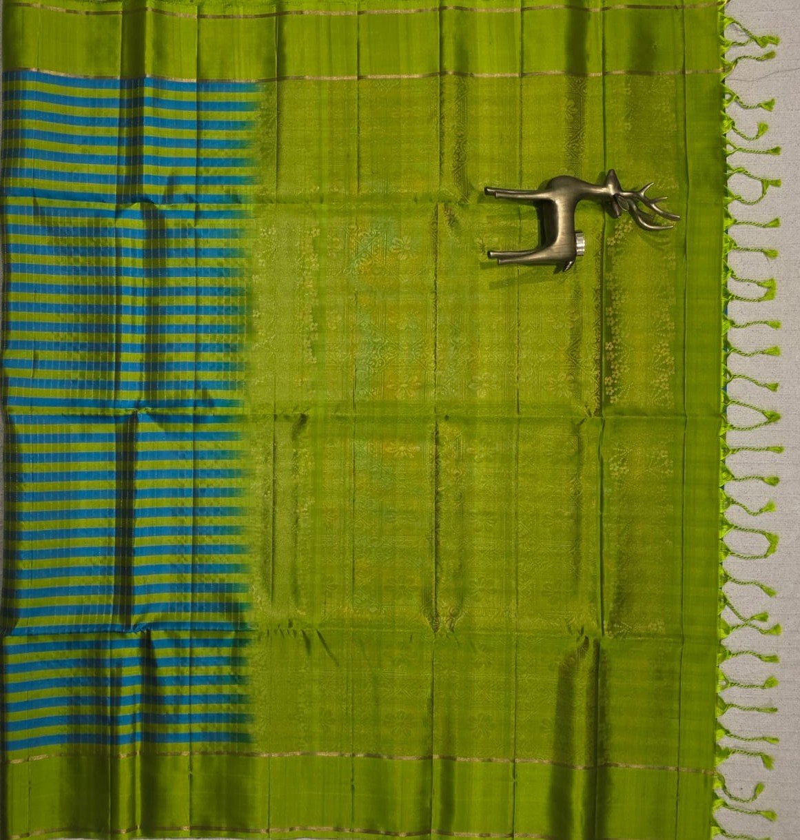Parrot Green & Sky Blue Sirumugai Soft Silk Saree